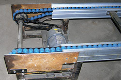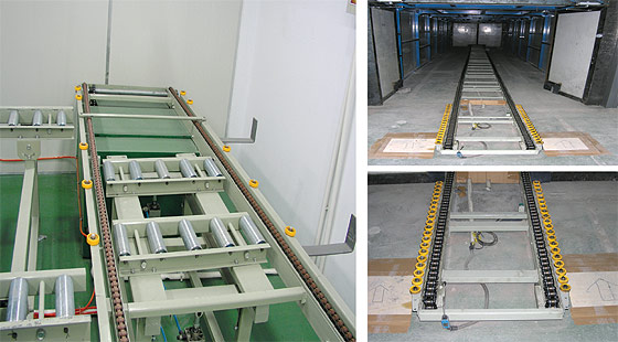 2、鏈條輸送機(jī)適合于輸送棧板及料盒