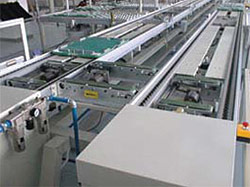 CSB型倍速鏈條輸送機(jī)是在特制的鋁型或特制的鋼結(jié)構(gòu)導(dǎo)軌中,安裝塑料復(fù)合輥式倍速鏈條構(gòu)成的輸送設(shè)備。物品托盤放置在倍速鏈條上,被輸送物品放在托盤上或通過(guò)支撐器具放在托盤上,托盤的運(yùn)行速度是鏈條運(yùn)行的整倍數(shù)。因?yàn)殒湕l是復(fù)合輥結(jié)構(gòu),所以在鏈條不停的運(yùn)行中,托盤可設(shè)置輸送路線上的阻擋使托盤停止運(yùn)行。底面是大平面的物品可不用托盤。這一特點(diǎn)很適合自由節(jié)拍的流水線的生產(chǎn)工作。